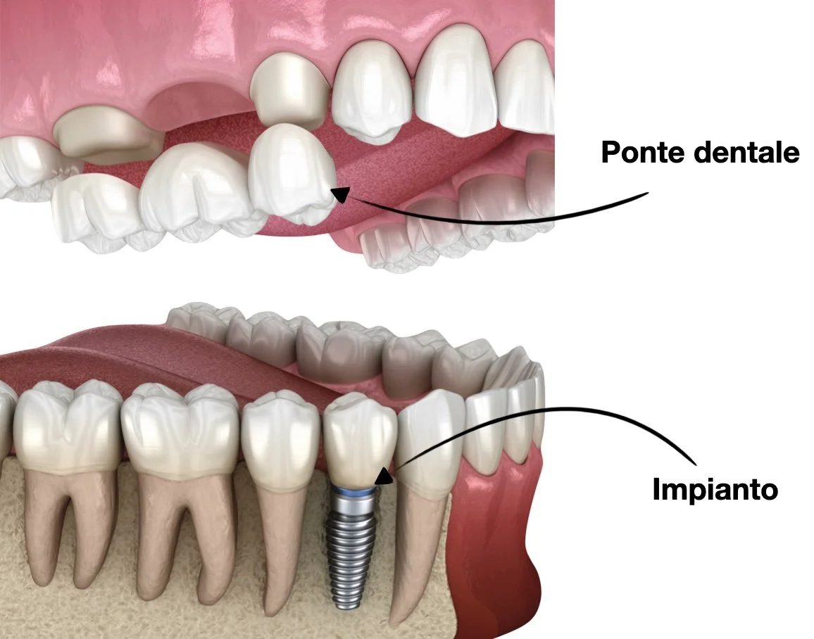 Qual è la differenza tra impianto e ponte dentale?